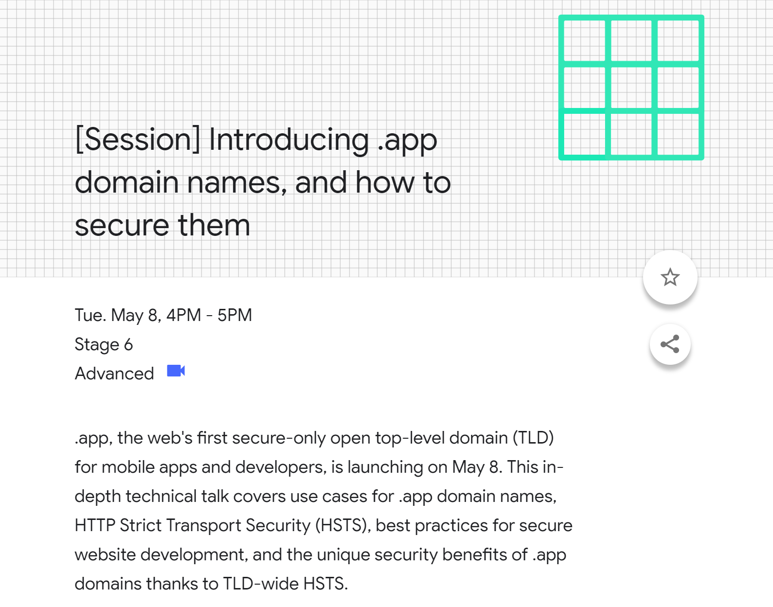 Von heute, den 8. Mai 2018, bis einschließlich Donnerstag, den 10. Mai 2018, veranstaltet Google in Mountain View (Kalifornien) seine jährliche Entwicklerkonferenz, die Google I/O. In diesem Jahr findet die Konferenz zum 10. Mal statt und es wird nicht nur alles um neue Hard- und Software drehen, sondern auch um die neue Endung .APP. Bereits heute, zwischen 16 und 17 Uhr Ortszeit, findet der Vortrag „Introducing .app domain names, and how to secure them“ statt. Die Google I/O wird live auf Youtube übertragen: https://www.youtube.com/watch?v=_OAoH-r8rRs. Wer sich den .APP Vortrag allerdings live anschauen möchte, muss sich bis 1 Uhr morgen früh (09.05.) gedulden, dank der 9 Stunden Zeitdifferenz zu unserer aktuellen Sommerzeit.